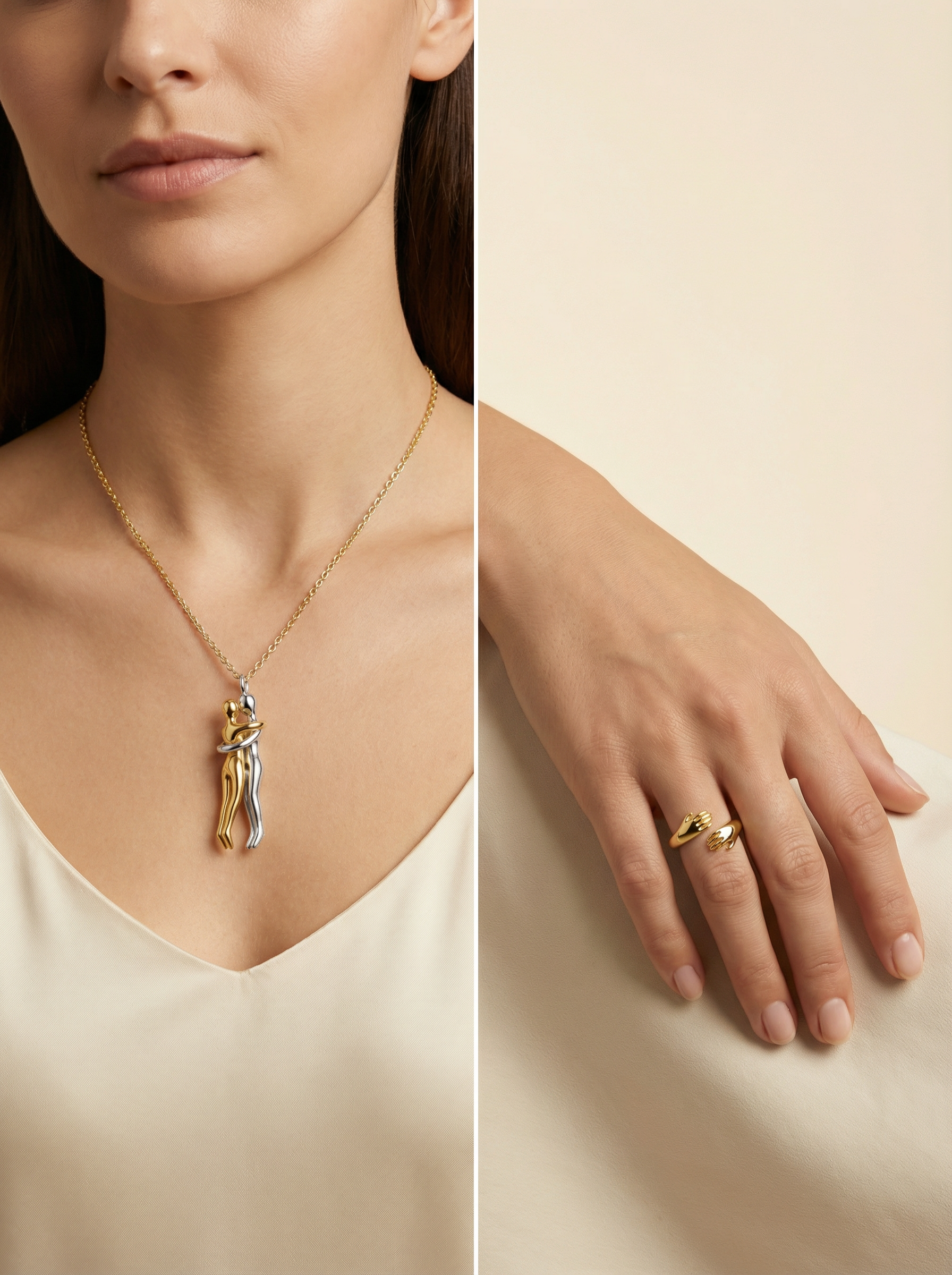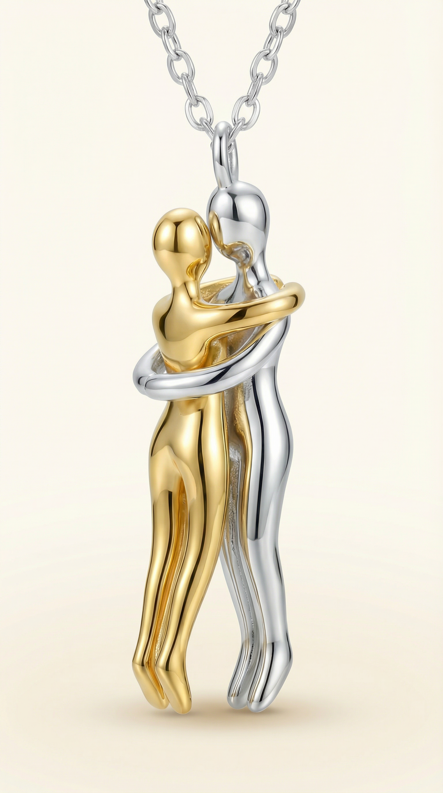 Sarılmayı simgeleyen figürleriyle, duygusal bağı ve yakınlığı sade ama güçlü bir şekilde yansıtır.